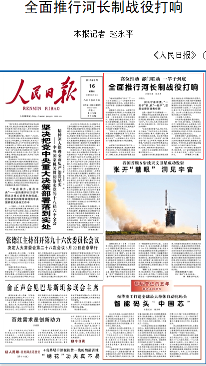人民日?qǐng)?bào):全面推行河長制戰(zhàn)役打響